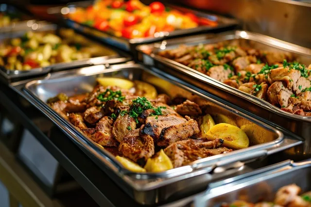 Nos repas chauds sont soigneusement préparés avec des ingrédients frais et délicieux. Cette formule est offerte uniquement en buffet et peut s'adapter à tous les goûts.